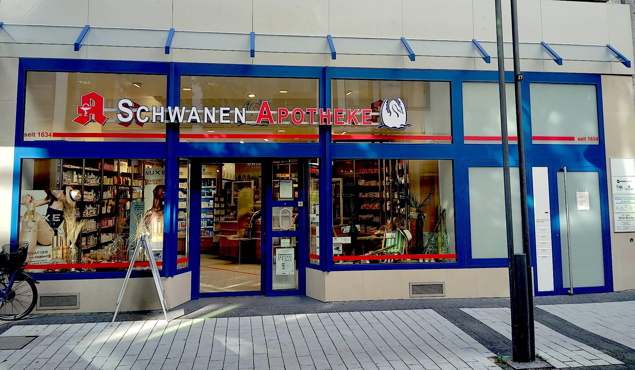 An diesem Standort in der Fußgängerzone war die alte Werbeanlage der SCHWANEN APOTHEKE für die Erfassung der Laufkundschaft viel zu hoch und außerhalb des direkten Blickfeldes platziert!